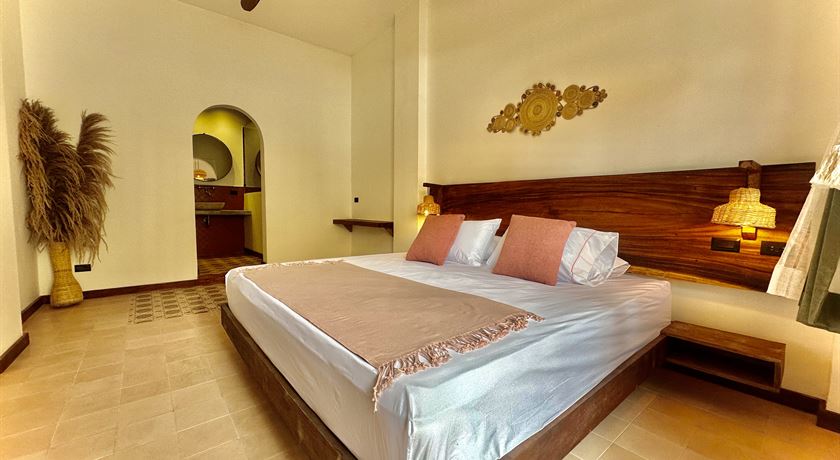 Rooms with king-size bed, private bathroom, air conditioning, and a desk.